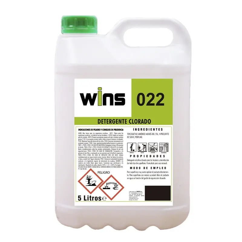 Vinfer Detergente Alcalino Clorado Wins 022 Garrafa 5L Incoloro es un potente limpiador y desinfectante diseñado especialmente para proporcionar una limpieza profunda y mantenimiento de higiene óptimo.